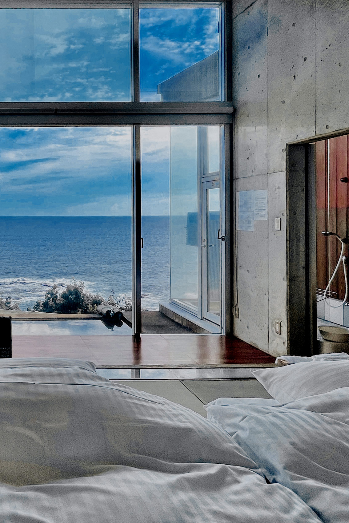 ここは本州最南端、和歌山県串本町にある宿。断崖絶壁の上に建ち、果てしなく広がる大海原を一望でき、朝日の煌めき、夕日に染まる風景、露天風呂に浸かりながら見る夜空に瞬く一面の星空まで大自然に浸ることができる場所。日本の原風景が残る、世界遺産熊野の自然に溶けこんだ悠久の時間をご堪能下さい。